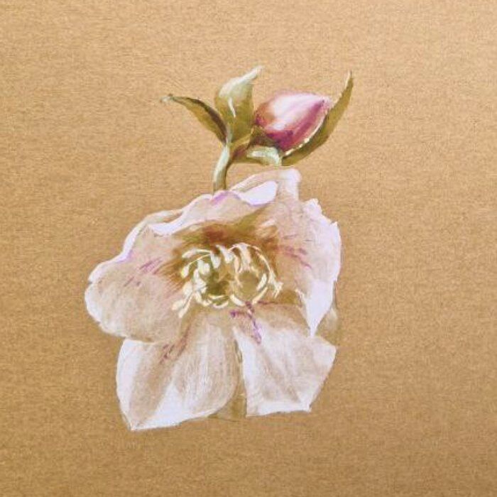 В первой части курса нарисуем на тонированной бумаге один цветок морозника и поговорим о возможностях использования белил в акварели. Работу будем вести в послойной технике акварельной живописи. Постараемся сделать лепестки «живыми» и передать объем цветка.