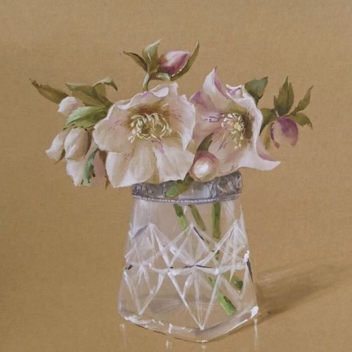 В основной части доработаем акварелью букетик морозника и поместим его в хрустальную вазочку. Узнаем, как сделать не только каждый цветок, бутон и листья объёмными, но и весь букет. Также художник покажет, как написать хрусталь: передать прозрачность и искристость этого материала.