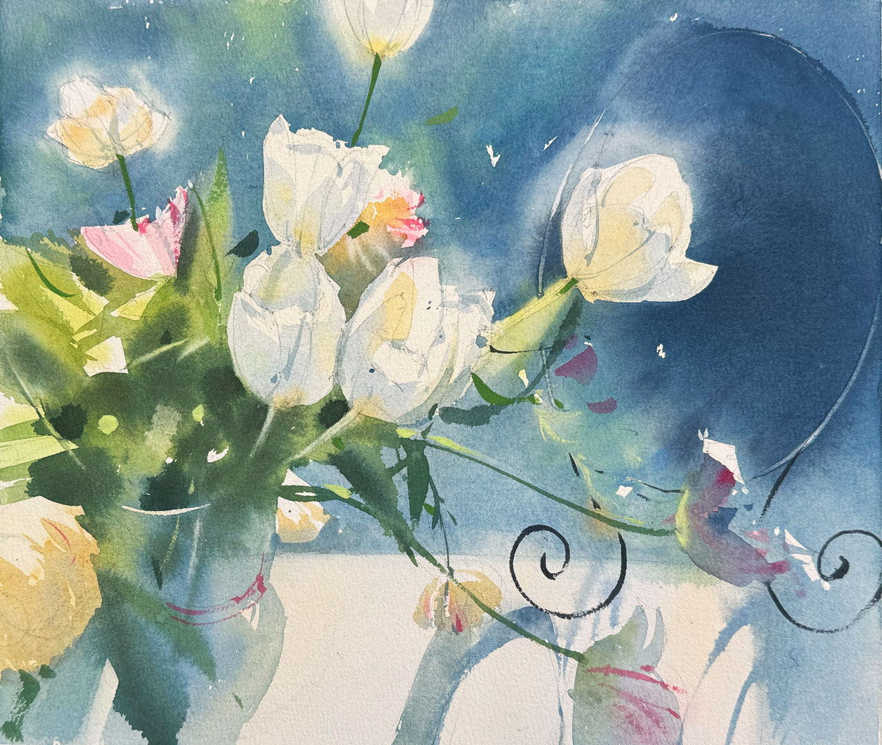 палитра; ёмкости для воды; простой карандаш HВ; клячка/ластик; бумажные салфетки; фен.