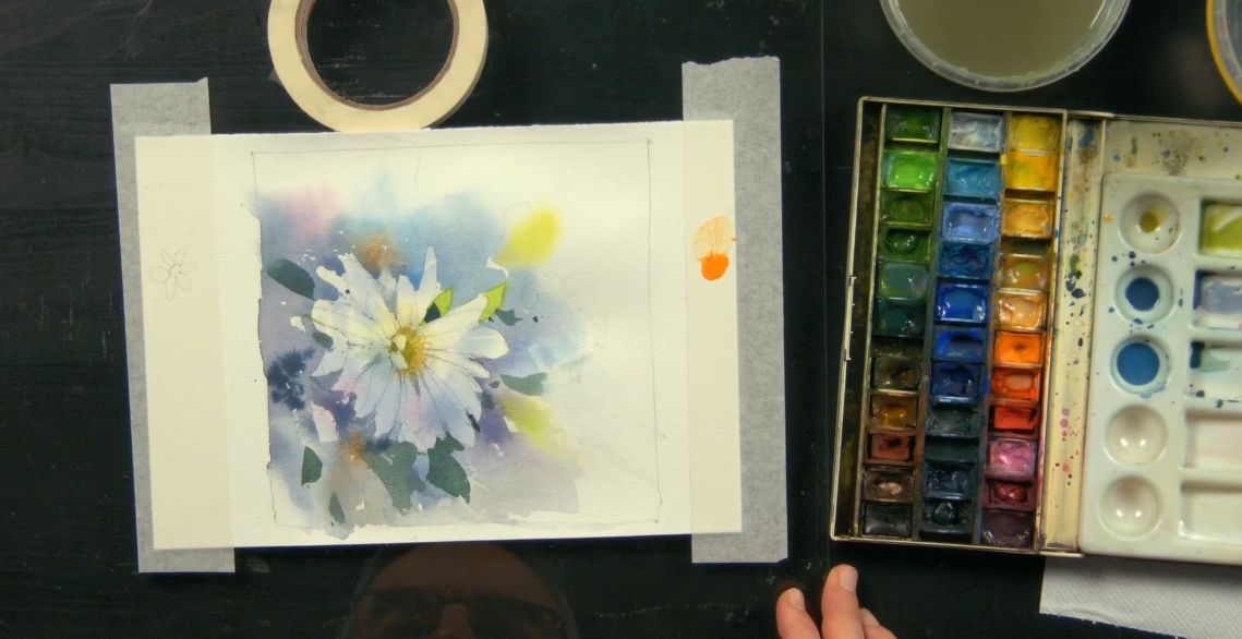 Акварельная бумага, желательно 100% хлопок плотностью не менее 300 г/м2, среднее зерно (cold press). Например, следующих производителей: Saunders Waterford, Arches, Baohong, Canson Watercolor и др. Размер основной работы — А3, этюд первого часа — А4. Сергей будет рисовать на бумаге Baohong, 100% хлопок плотностью 300 г/м2, среднее зерно.