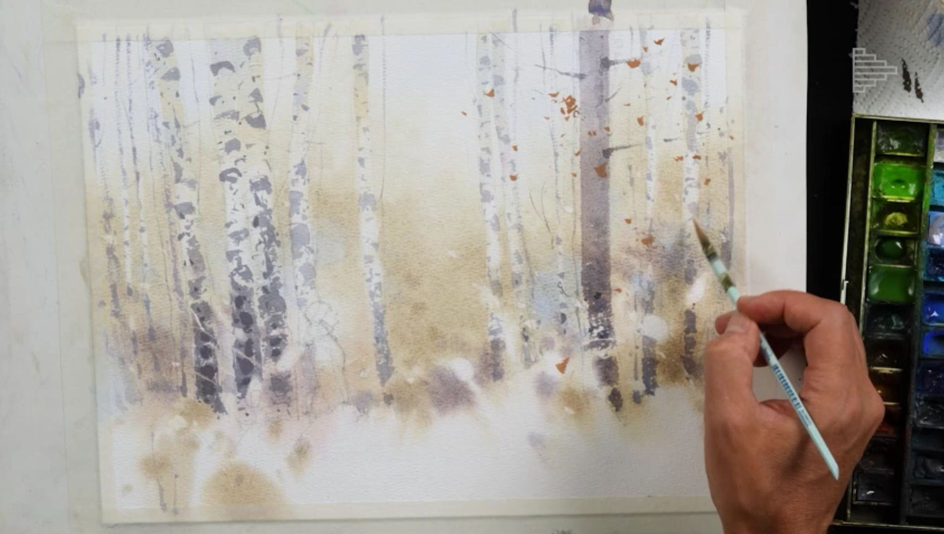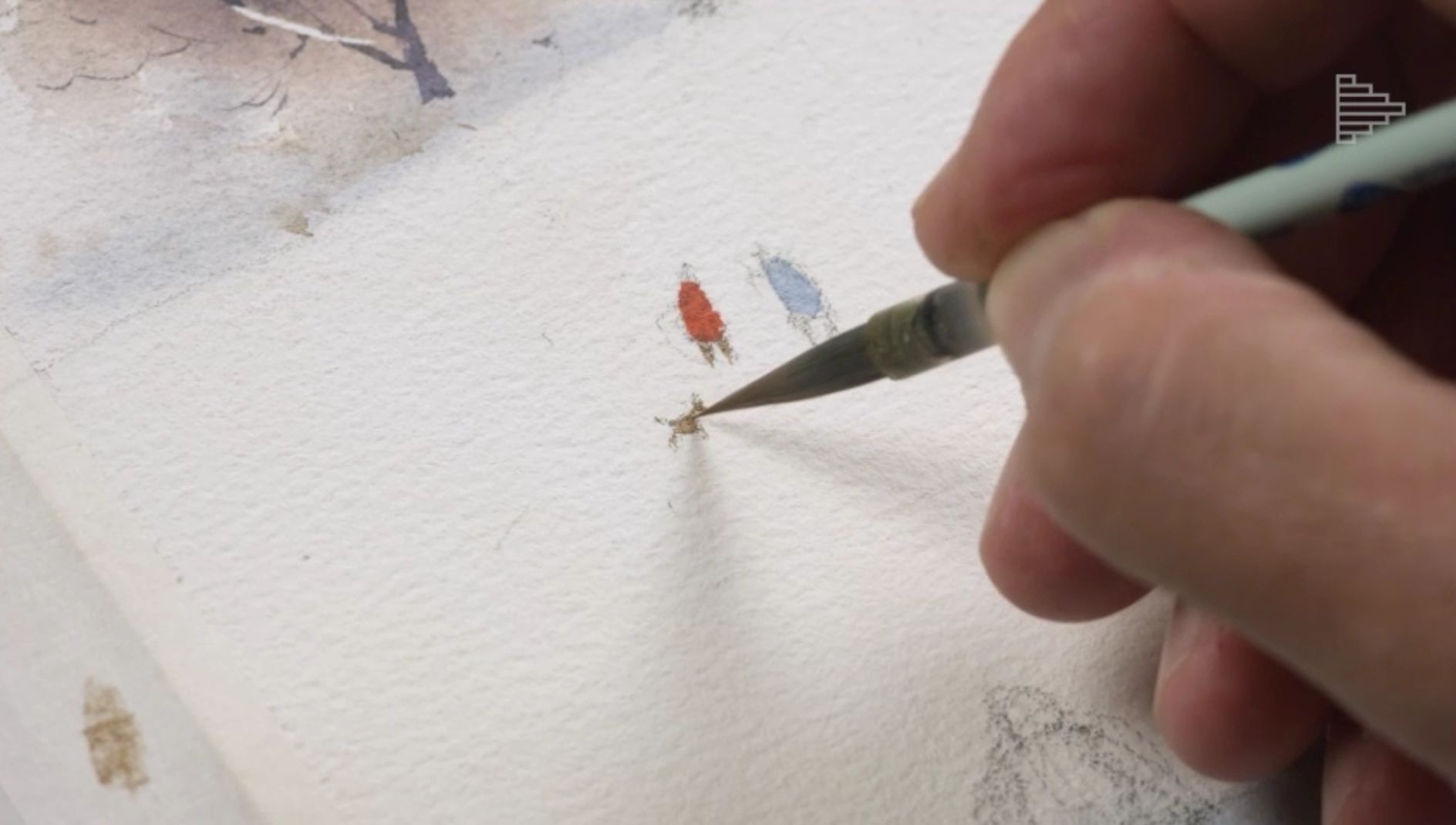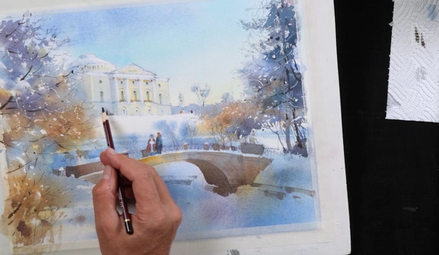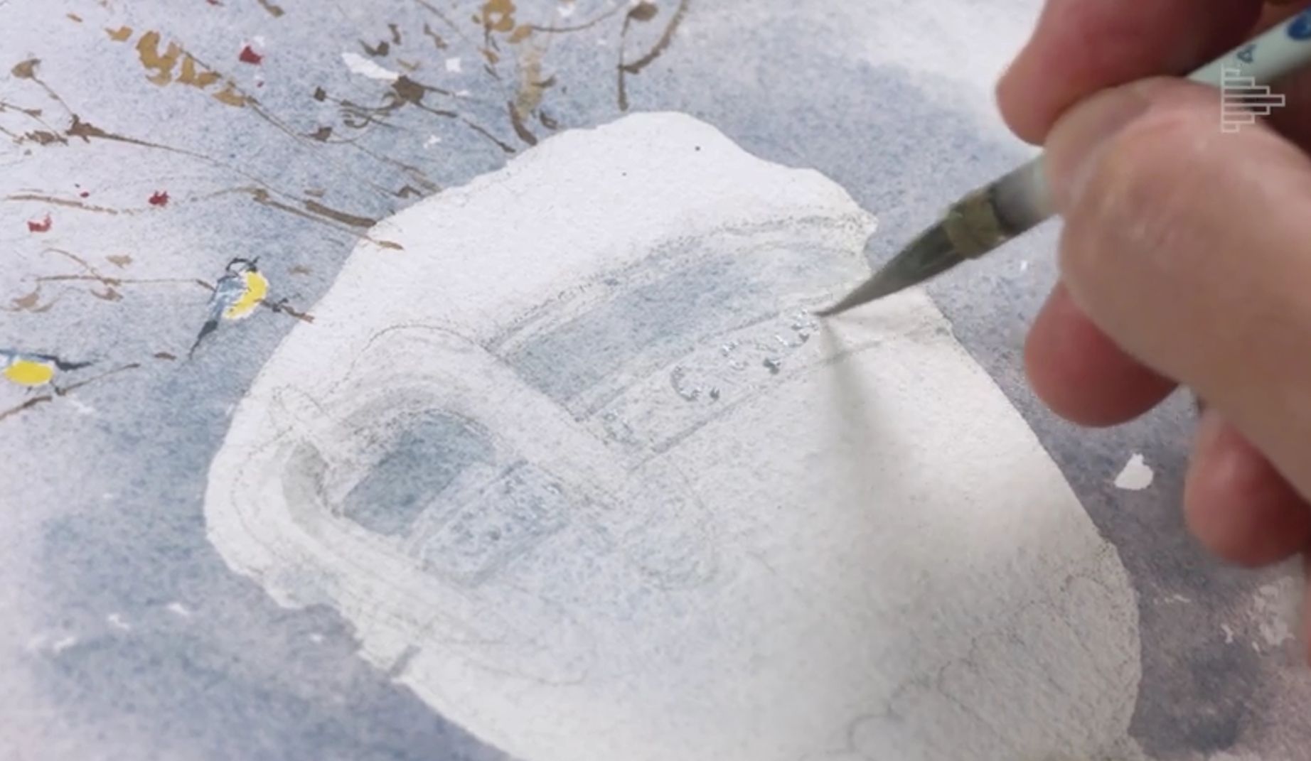 Профессиональные художественные кисти для акварели (колонок, белка, синтетика микс), например, Pinax, ROUBLOFF, Невская палитра, Сонет, Da Vinci и др. У Сергея три круглые кисти от Pinax: №10, №8 и №6; тонкая круглая кисть соболь микс от Невской палитры №4, тонкая круглая кисть синтетика Pinax hi-tech №5, тонкая кисть с длинным ворсом (лайнер), широкий флейц с натуральной щетиной для смачивания листа, плоская кисть из синтетики овальной фоомы. Для маскирующей жидкости понадобится тонкая кисть из синтетики. Для маскирующей жидкости понадобится тонкая кисть из синтетики с упругим ворсом.