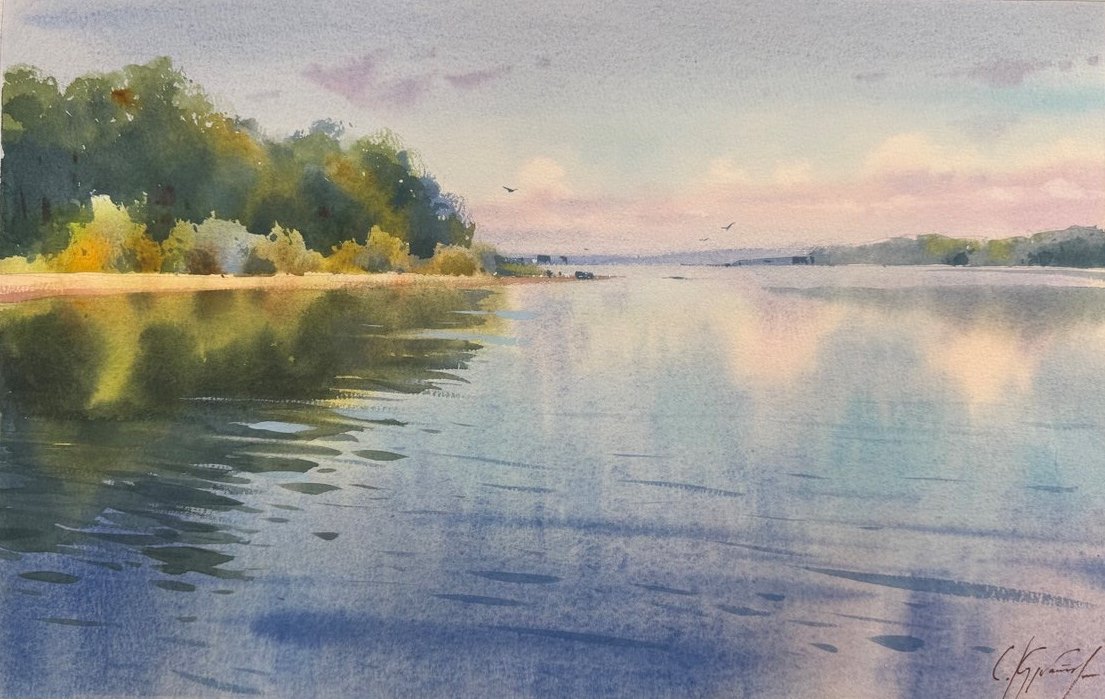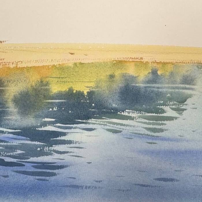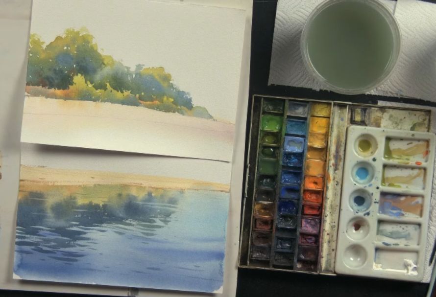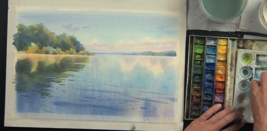 Профессиональный набор акварели от 24 цветов следующих марок: Enterclass, Гамма, Pinax, Белые ночи, Schmincke, Van Gogh, W&N, Lukas или др. Краски могут быть в кюветах или в тюбиках. Понадобятся следующие цвета акварели (приведены цвета из Невской палитры): охра светлая, неаполитанская жёлтая, майская зеленая, травяная зелёная, умбра, таежная и гематитовая дымки, кобальт синий, сиена жженая и натуральная, иргазин желтый, королевская голубая, голубая фц, магнолия. Также может понадобиться гуашь титановая.