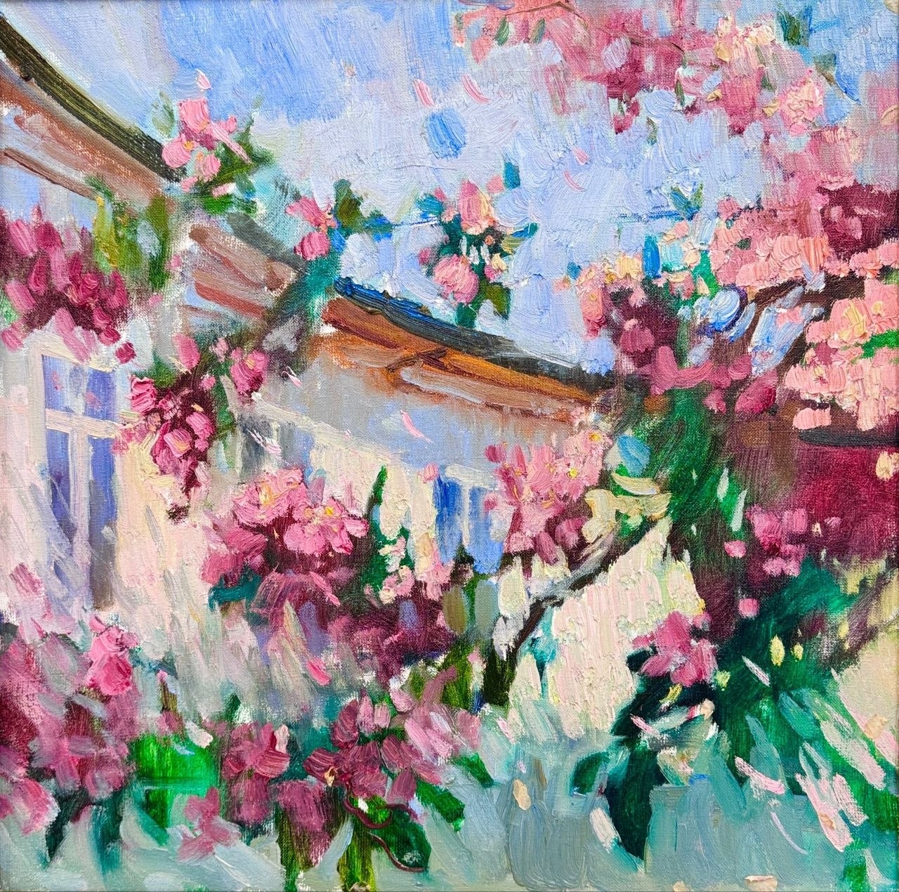 В основной части урока научимся создавать гармоничный цветной подмалёвок под работу масляной пастелью. Потренируемся изображать глубокое пространство и несколько планов, перекрывающих друг друга. Соединим все знания воедино и напишем сюжет с цветущим московским двориком.