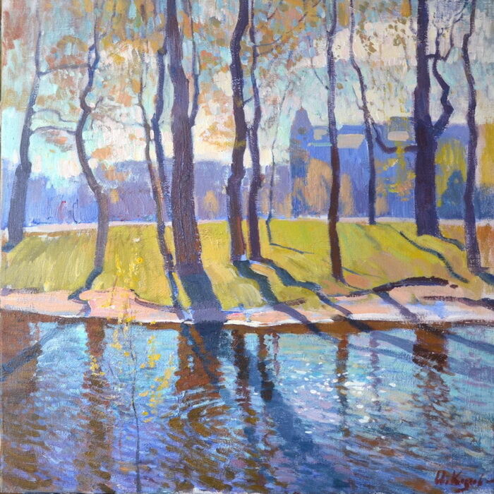 В основной части урока напишем маслом пейзаж с деревьями, которые отражаются в воде. Попробуем реалистично изобразить контражурное освещение, а главное — сделать "живую" воду, чтобы она играла и переливалась как в жизни. Не срисовывая с фото и не копируя действительность, научимся передавать ощущение воды, света, воздуха через цвет и фактуру. Поговорим, что такое ритм в пейзаже, как выстроить пятно, чтобы композиция "держалась", и почему иногда цвет "работает", а иногда "не работает", превращаясь в глухой тон. Разберём основы теплохолодности и поговорим о цветовой гармонии на основе ограниченной палитры.