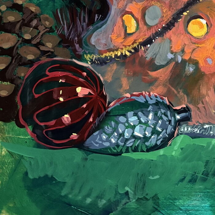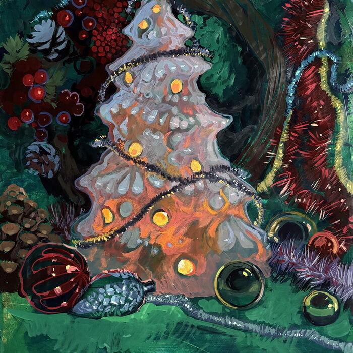 В основной части эфира сосредоточимся на двух моментах. Первый — блеск и свет внутри натюрморта. Как написать мишуру, чтобы она блестела, но не прорисовывать каждую мишуринку? Как написать елочный шар, в то время как в нем отражается вся комната? Как написать светящийся объект, наконец? И все это поможет сделать не только гуашь, но специальные способы работы с ней. Второй момент исследований — гуашь по акриловой имприматуре. Чем такой подход отличается от живописи по цветной бумаге, и отличается ли? Как имприматура может нам помочь в воплощении наших задач? И наконец — как сделать так, чтобы тёмный натюрморт гуашью мерцал и светился, словно он написан какими-то другими красками? Обо всем этом и многом другом поговорим в основной части эфира.