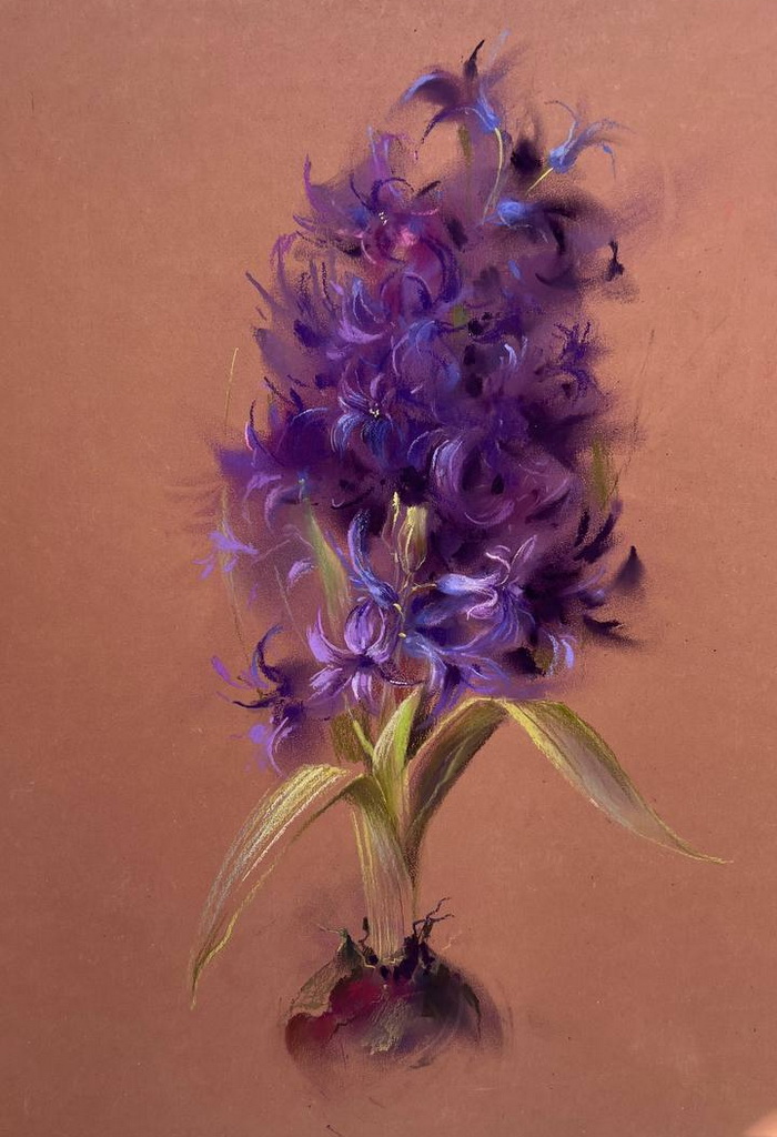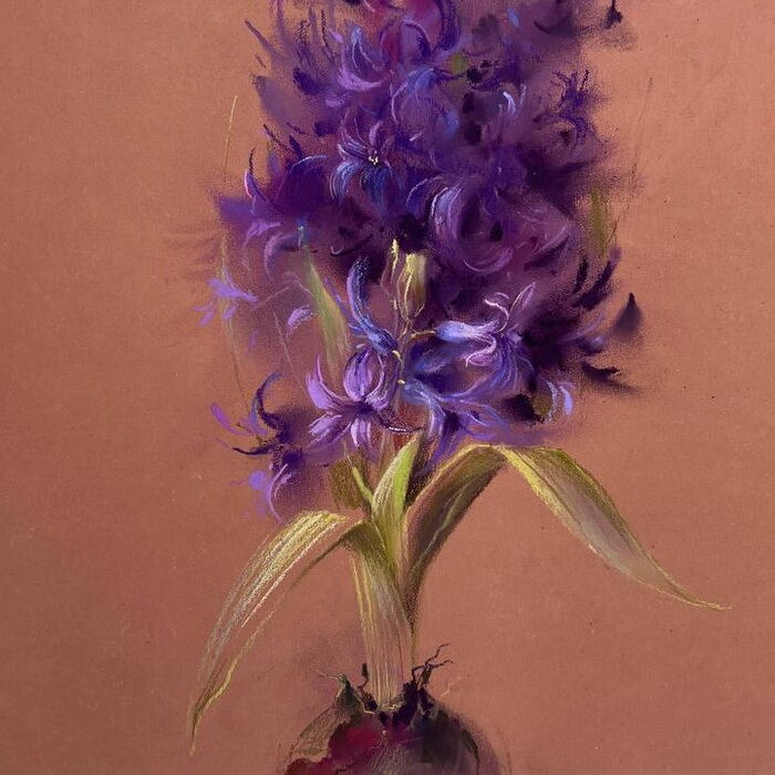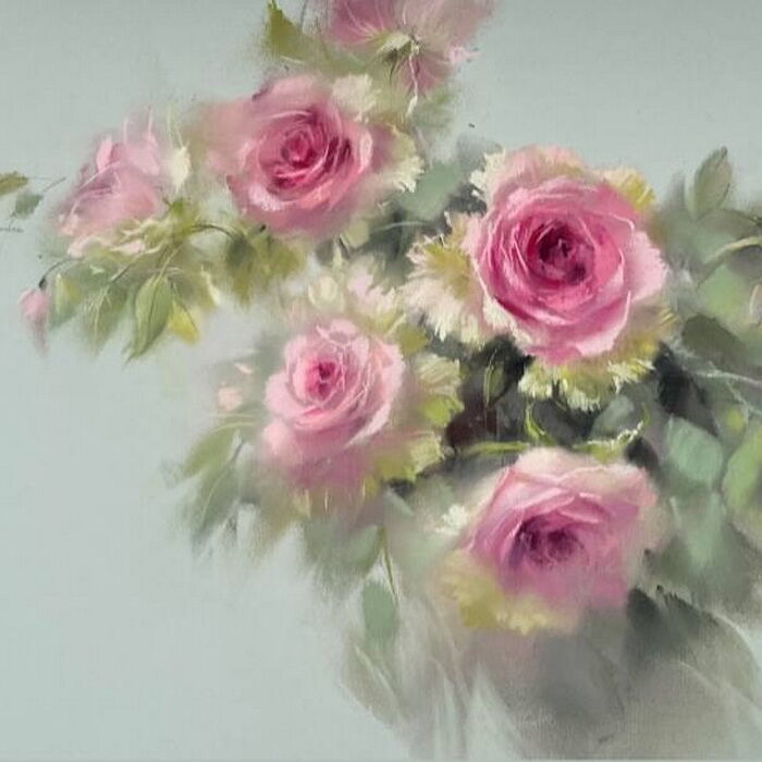 В основной части эфира нарисуем сухой пастелью воздушный букет роз. Создадим гармоничную композицию и ритм из бутонов. Научимся с помощью цвета и света передавать объём и воздушность букета из одинаковых цветов.