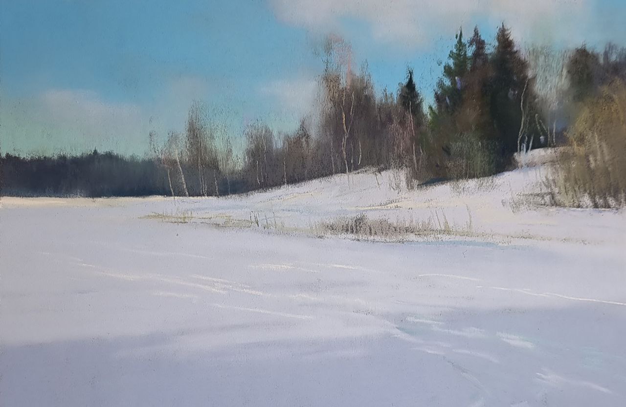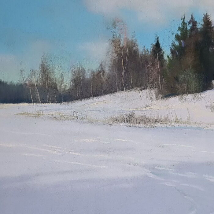 Для первой части урока понадобится сухая пастель любых марок, например, EARTHBERRY, nuanсe, Малевичъ, ГАММА. Для неба понадобятся оттенки: светло-голубой тёплый, бледно-розовый, небесный, светло-серый, ультрамарин. Для снега: белвй, серо-голубой, серый, серо-розовый. Для деревьев: тёмно-синий, фиолетовый, тёплый серый тёмный, холодный серый тёмный, охра, тёмно-зелёный тёплый, тёмно-зелёный холодный. Фото материалов для первой части ЗДЕСЬ, ЗДЕСЬ, ЗДЕСЬ.